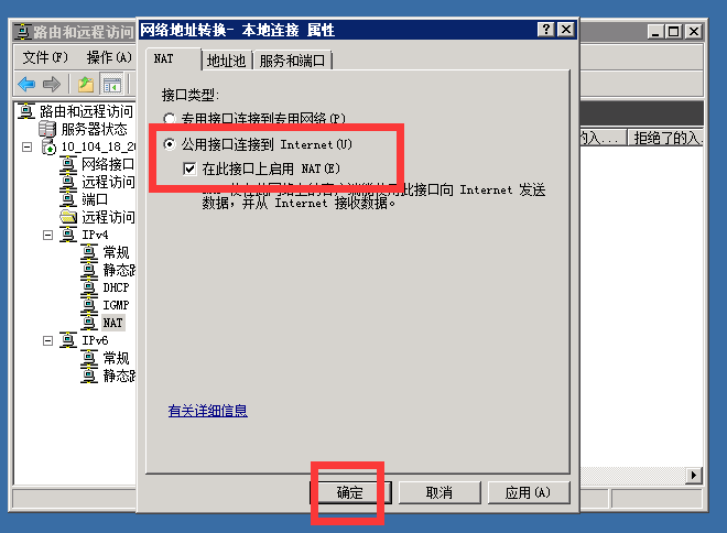 然后按照下图开启NAT访问,NAT右键,新增接口